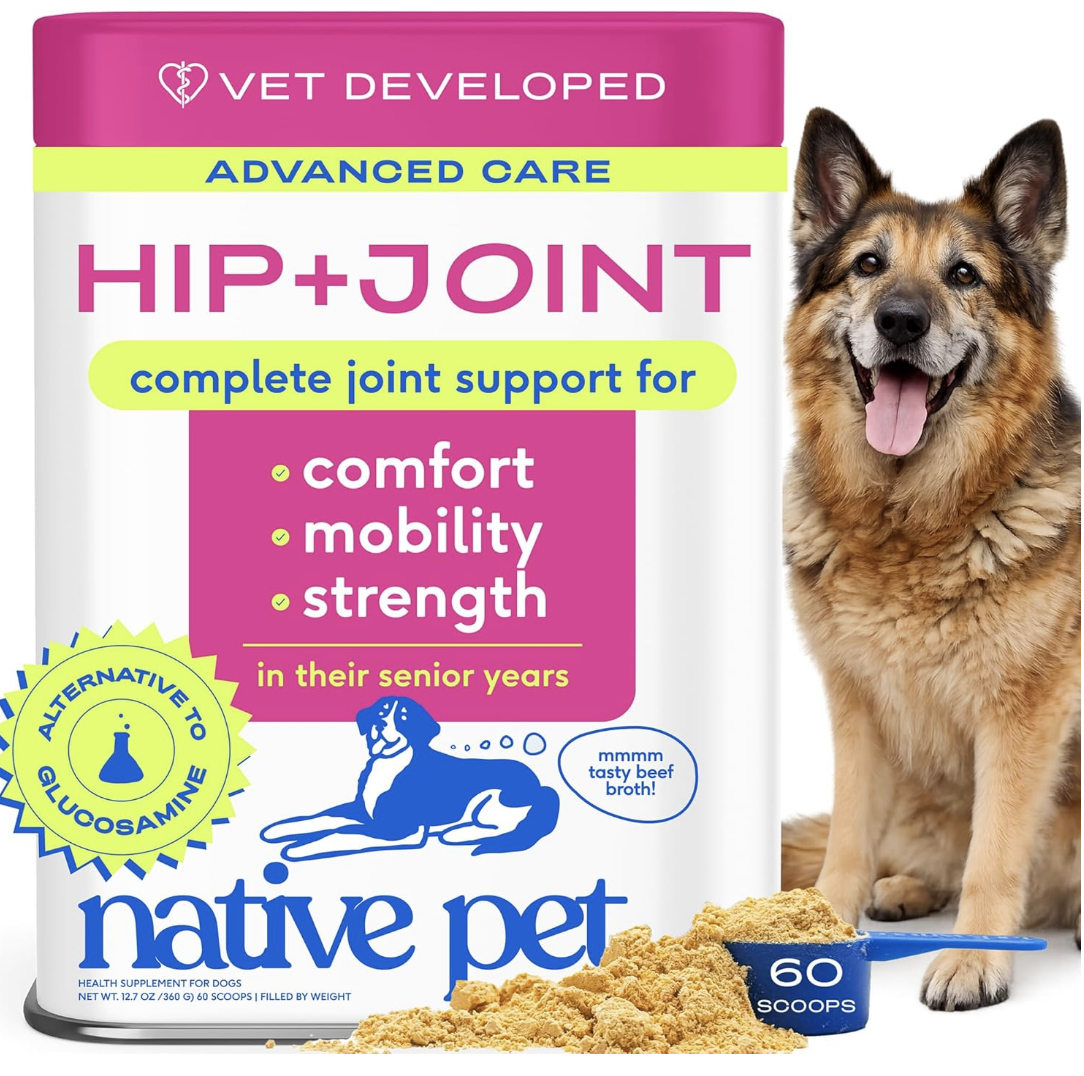 Native Pet Hip & Joint Advanced Care Dog Joint Supplement Powder for Mobility & Movement Support, Joint Supplement for Dogs with HMB, UC-II Collagen