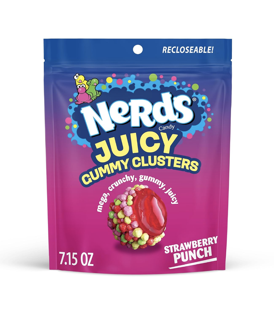 NERDS Juicy Gummy Clusters, Strawberry Punch, Juicy and Gummy Candy, 1 Stand Up Bag, for Snacking and Sharin